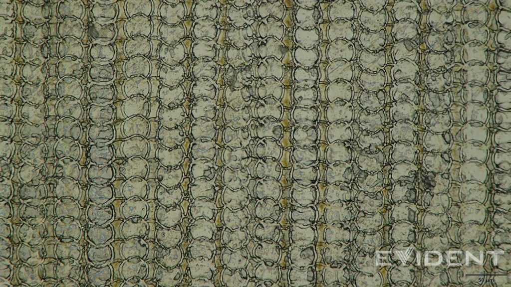 After disassembling the iPhone Air, we examined the USB-C connector using an Evident DSX2000 microscope. The magnified image of the USB-C connector revealed a perplexing detail: a chain-like circular surface pattern that even experienced 3D printing experts couldn’t explain. At a scale of 50 micrometers, this pattern appears extremely unusual.